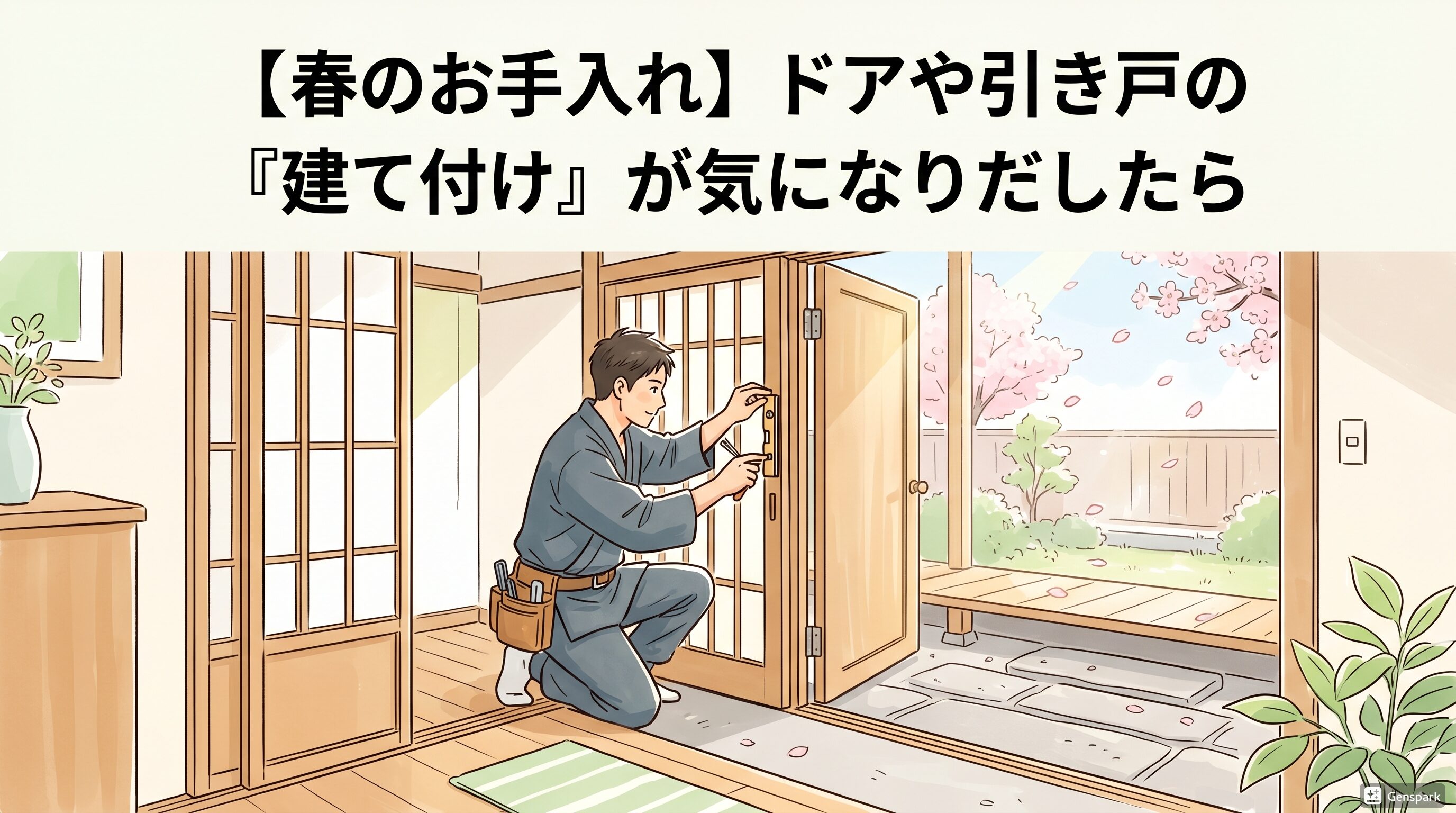 日に日に暖かくなり、庭の木々も新緑が美しい季節になりましたね🌿春から梅雨にかけてのこの時期は、「なんだかドアが閉まりにくい」「引き戸がスムーズに動かない」といったご相談をいただくことが増えます。